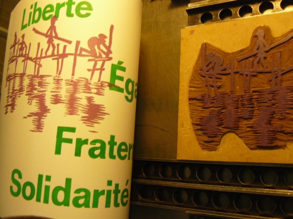 J’aime beaucoup l’idée… et j’ai hâte de « voir pour de vrai » ce travail de composition entre Lino et caractères typo… Il n’y a pas un problème d’épaisseurs différentes ?