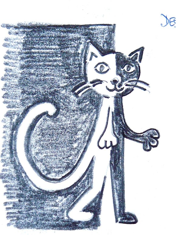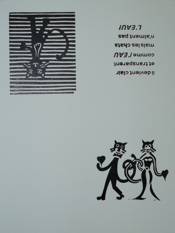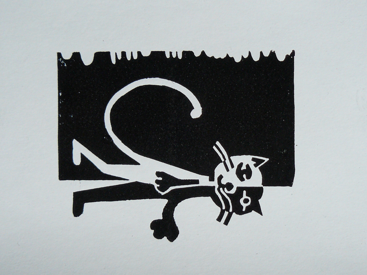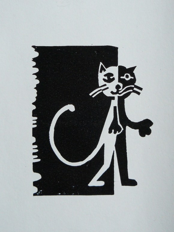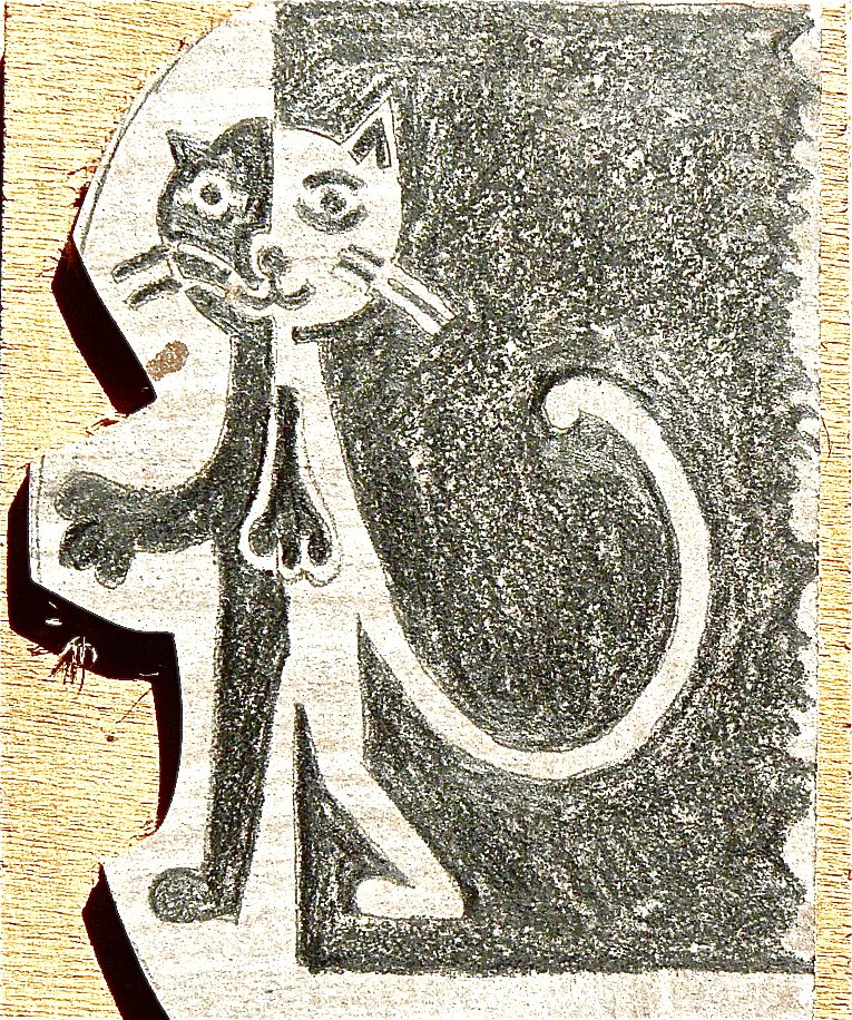 voici la première linogravure du chat noir :