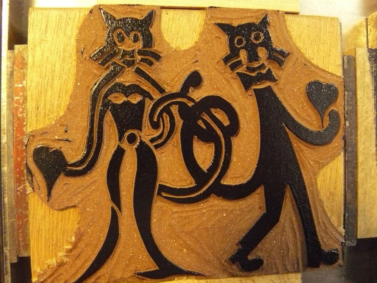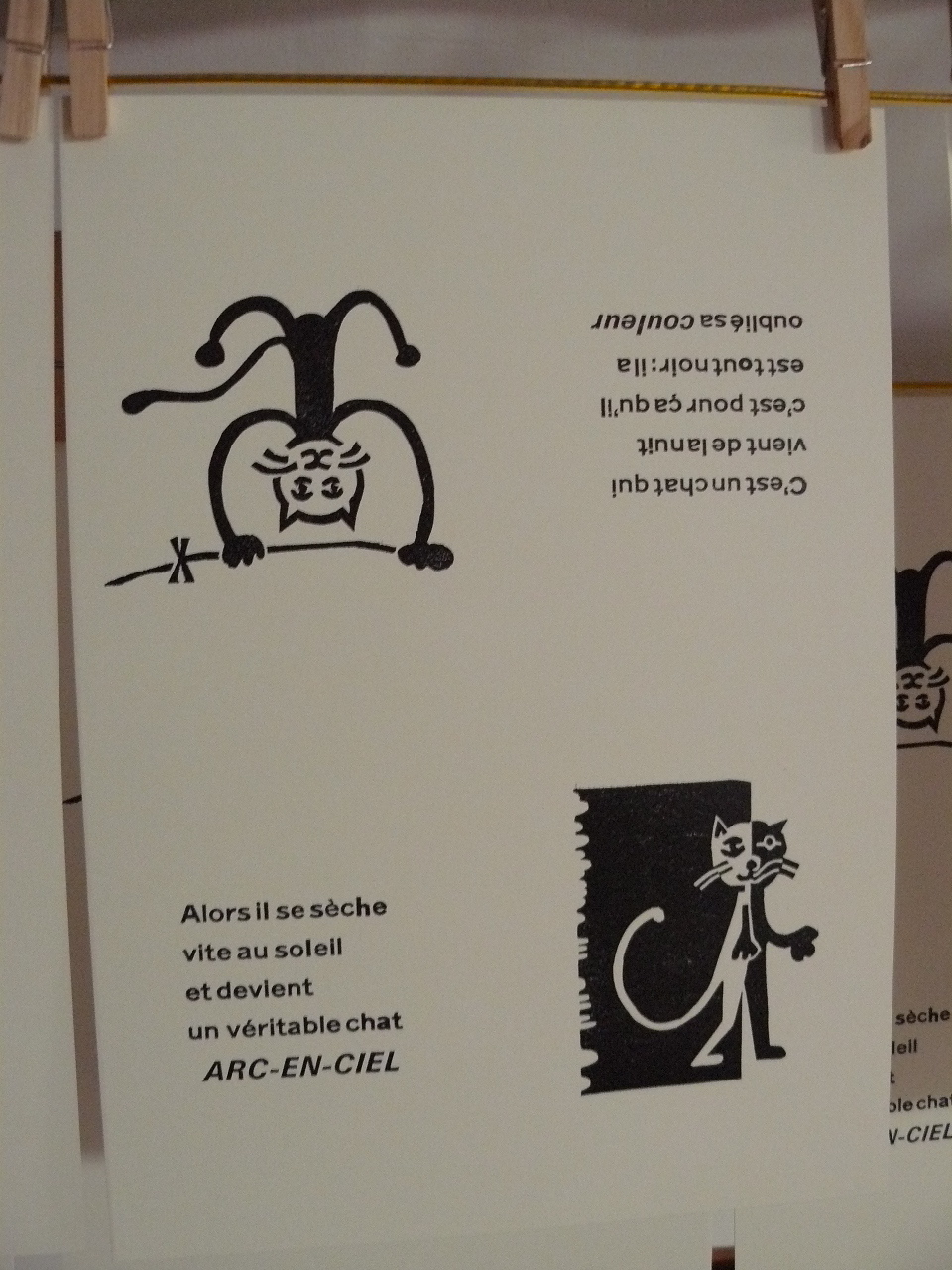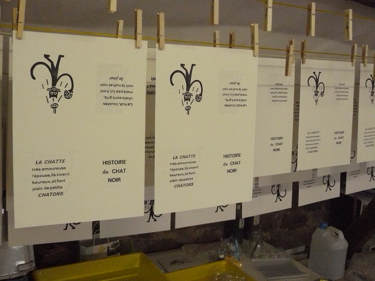 voici la première linogravure du chat noir :