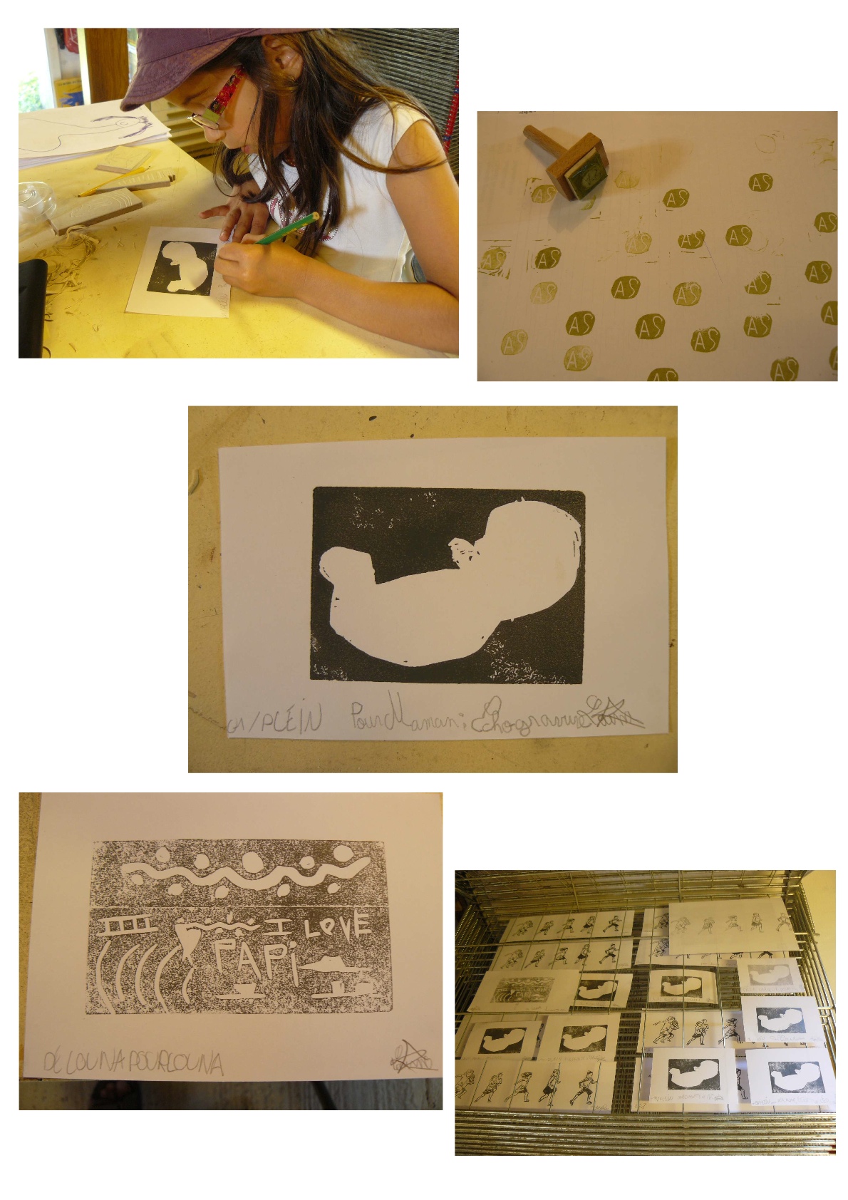 Préparation de l’expo « les agités de la cale », et immersion en linogravure à l’atelier.