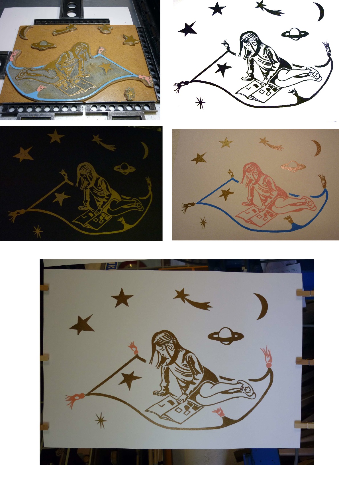 C’est prochainement une nouvelle venue pour l’atelier. Encore une presse ? Eh bien oui, quand la passion est là, on veut pouvoir tout essayer : Je n’ai pas de presse à cylindres : pour la lino, ce n’est pas vraiment nécessaire d’avoir une grosse pression. Par contre, ce type de presse permet d’imprimer quasiment en continu, en tous cas, de grandes longueurs.