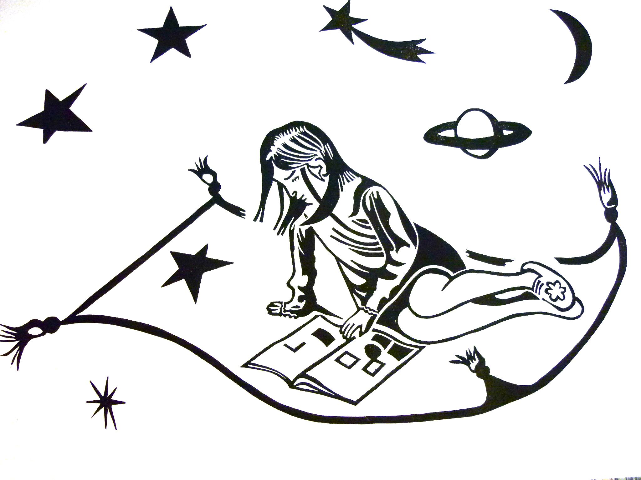 Alors quand le lino est arrivé, par hasard, sans préparation, j’ai redécouvert le plaisir de graver : pas de contrainte de fil, de séchage, de dureté, de noeuds, de voilage, un matériau aussi neutre qu’une feuille de papier, une toile tendue sur un chassis, permettant à la création de s’épanouir tranquille !