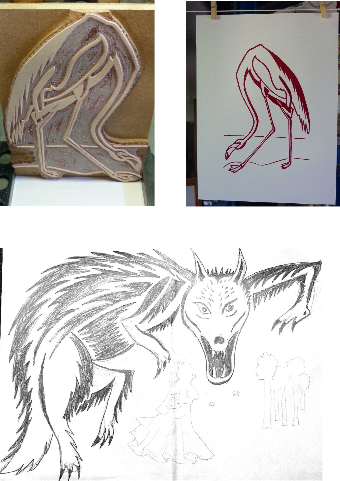 J’ai fait 10 tirages, et pendant qu’ils sèchent, je prépare enfin mon loup : lorsqu’elle a vu le petit chaperon rouge, imprimé cet hiver, ma petite Vivi a trouvé qu’ « on n’a pas vraiment peur, hein ? » alors, voilà un loup qui devrait remédier à ça ! Et puis, quoi de plus normal qu’un loup à la Bergerie !