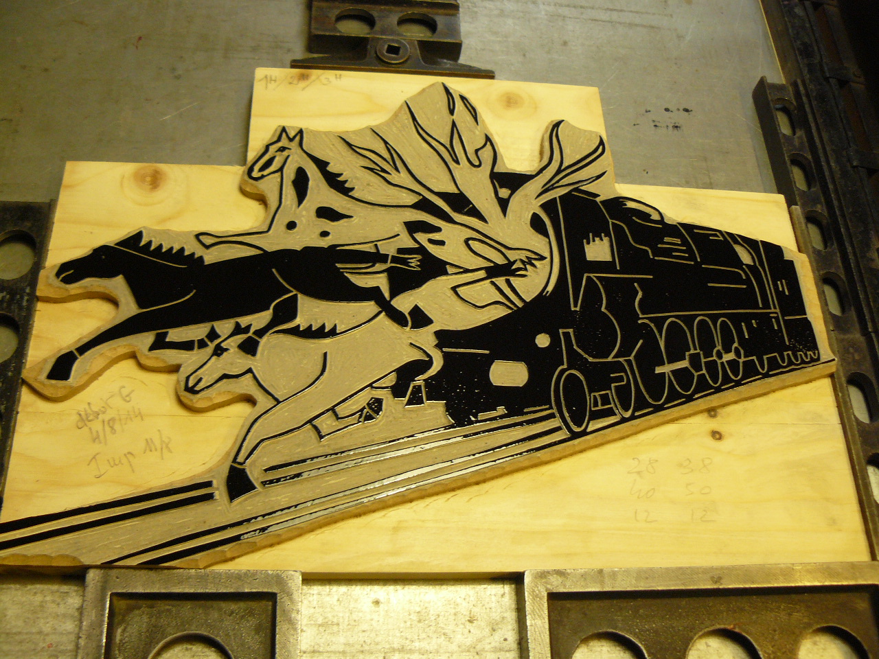 Et aujourd’hui, après une gravure minutieuse, vient l’impression sur la grande presse Vandercook n° 3 avec une encre noire fluide, sur un beau papier lisse de 150 g, et toujours, le même plaisir de voir la première épreuve se découvrir après le pressage.
