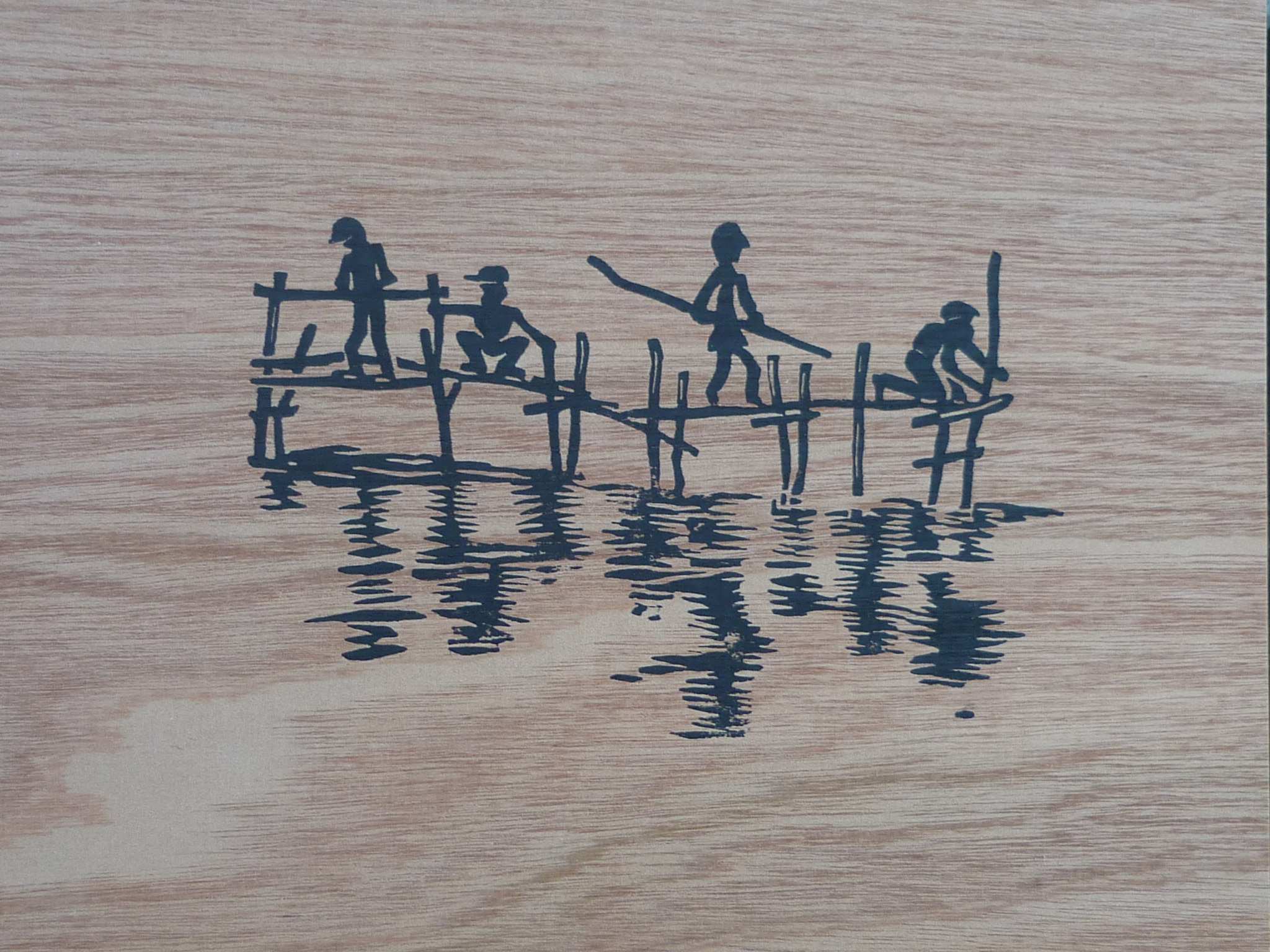 Comme une créa ne vient jamais seule, et que le week end dernier passé dans le golfe du Morbihan a réveillé l’attrait des océans, et que, DE PLUS, « océans » est l’anagramme de mon nom, je suis parti pour graver une série de bords de mer, de pin maritimes, de bateaux et de marins pêcheurs !