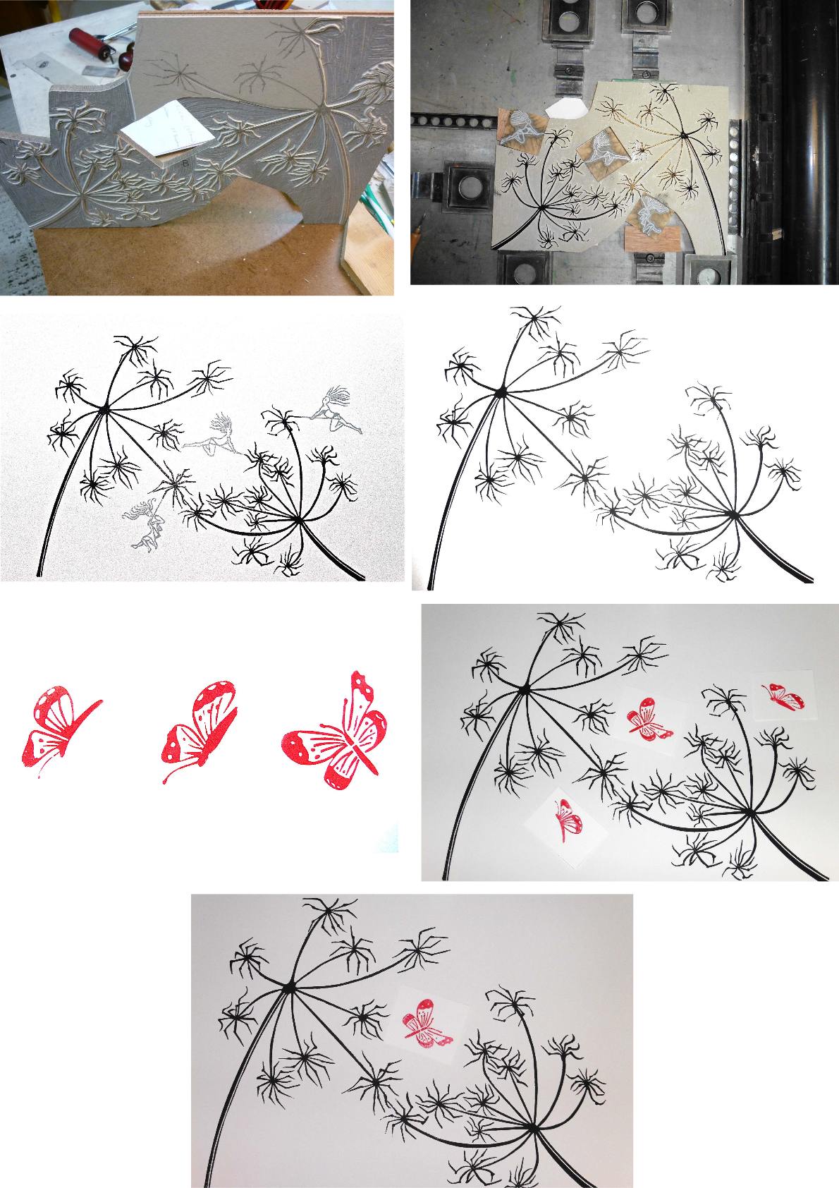 LINOGRAVURE DE BERCES ET PAPILLONS