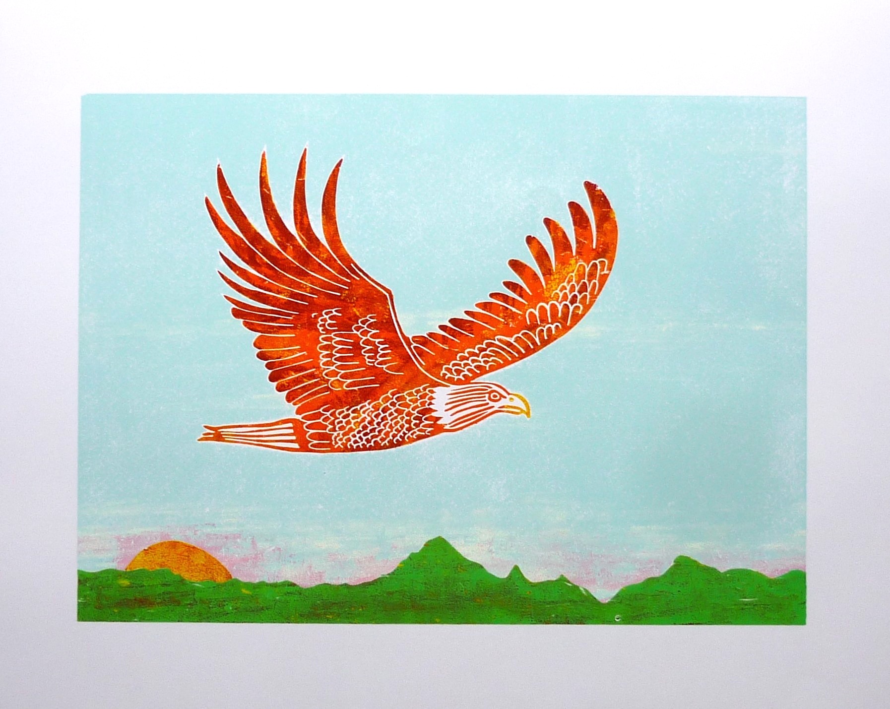 la linogravure de l’aigle s’envole elle aussi vers d’autres ciels !