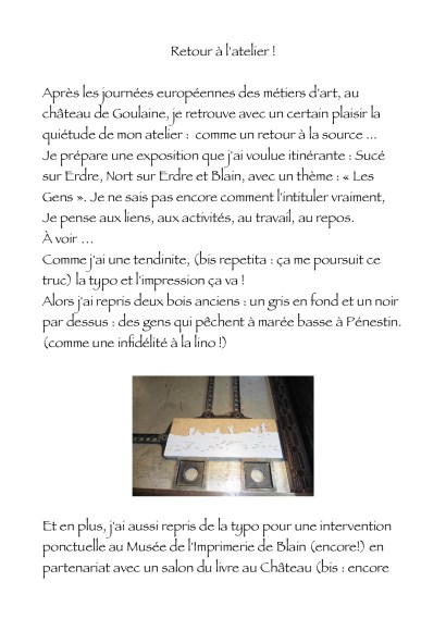 ATELIERS ET STAGES DE LINO-GRAVURE
