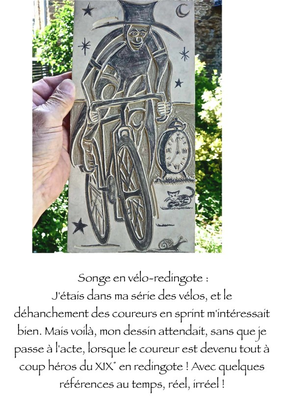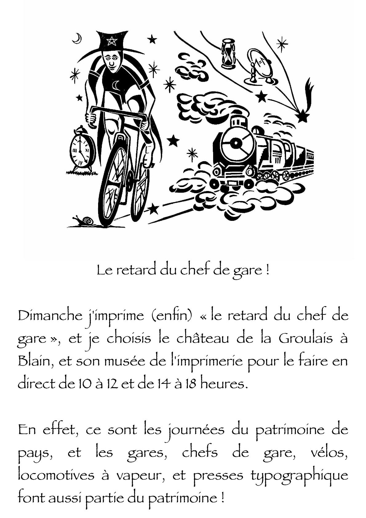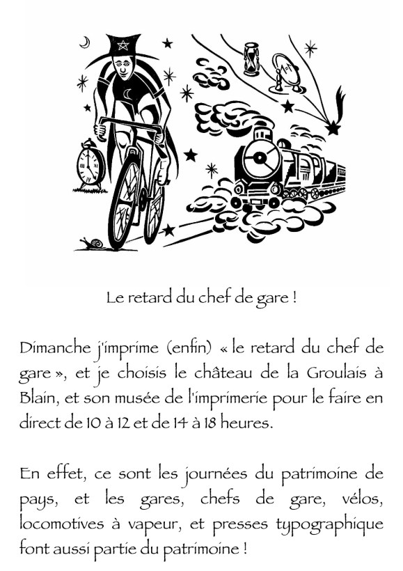 Impression de la linogravure « le retard du chef de gare » au musée de l’imprimerie de Blain