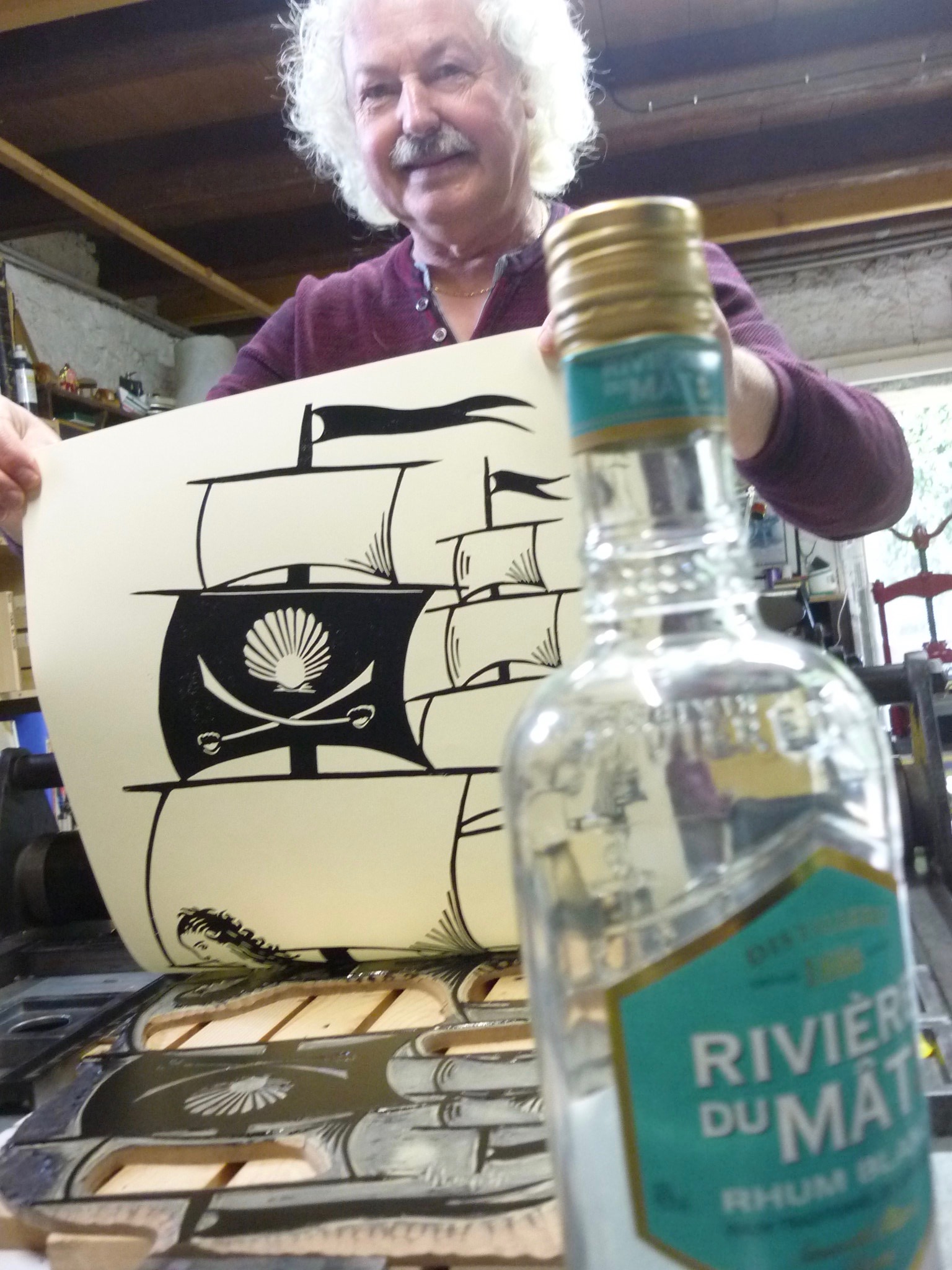 Mais comme il s’agit d’une foire qui a pour thème les corsaires, un peu les pirates et les boucaniers, il fallait du rhum dans cette histoire ! Alors de même qu’un vieux typographe écossais avait dilué son encre au whisky, j’ai dilué la nôtre avec un peu de rhum, pour le fun !