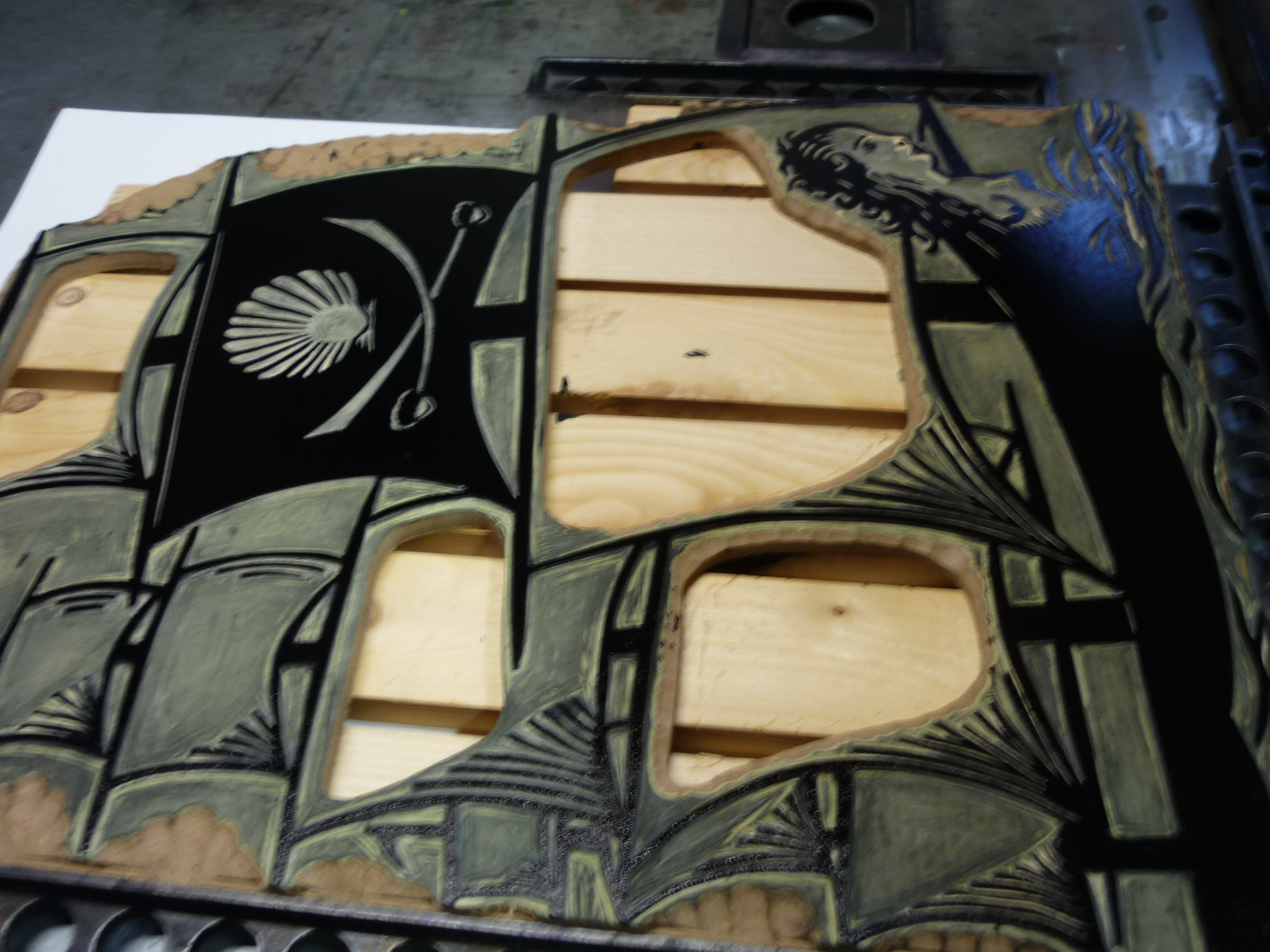 On a bien travaillé, bien ri, bien chahuté, mais même après un repas « pirates » concocté par Maryse et Cathy : avec une salade d’avocat au crabe, un ragout de bœuf aux épices, et des pommes au four, à la confiture et aux noix, on a réussi à imprimer nos 192 affiches. Enfin, on les a mises à sécher dans les claies et à l’étage de l’atelier sur les cordes à linge.