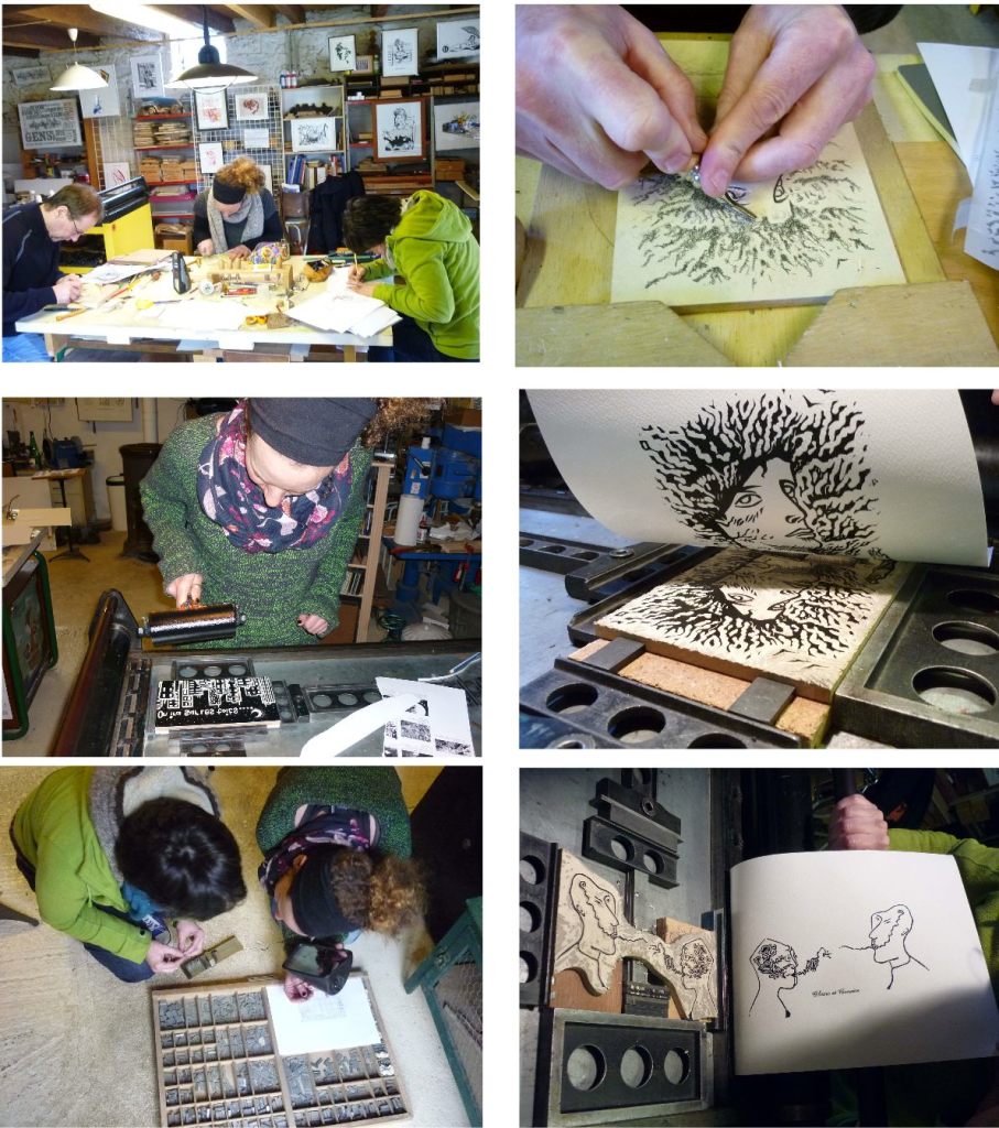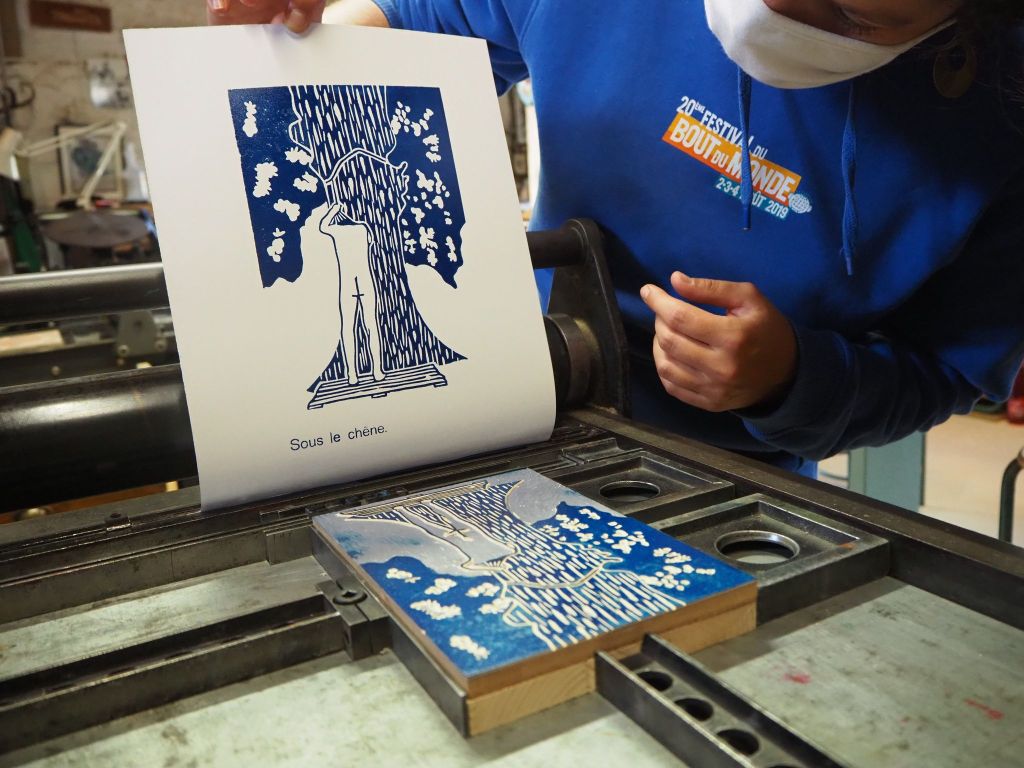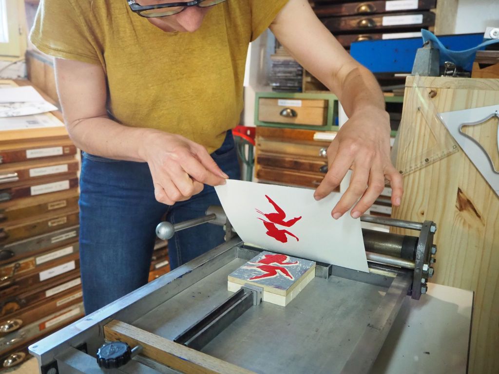 D’abord, c’était mon anniversaire, mais seule ma chérie m’a pris dans ses bras pour me biser. C’était bien, mais les autres non, forcément, c’était moins bien. On a commencé à fêter ça le jeudi, tous les deux.. On a continué samedi, alors que c’était un soir de travail : j’animais en effet ici, deux journées d’intense labeur. On s’était donné rendez vous il y a au moins un mois avec quatre jeunes femmes bien habituées à graver ensemble, pour travailler sur le thème de « l’érotisme ». Comme elle me l’ont dit ensuite, c’était pas forcément dans notre zone de confort ! Ni trop la mienne non plus ! Ça ne nous a pas empêché de rire, boire, manger ensemble, en essayant au maximum de respecter les « gestes barrières » Mais on s’est perdus dans la campagne en rentrant le soir ! Dimanche on a imprimé, dans l’effervescence : il fallait voir ce que tout ça donnait sur le papier. Le prochain stage, ouvert à toutes et à tous, a lieu les 24 et 25 Octobre, l’ambiance sera la aussi conviviale et sérieuse tout à la fois. (respect des règles covid19) Il reste deux places, alors à vos téléphones, mails, pigeons voyageurs : touts les renseignements sur jp.graveur.com.