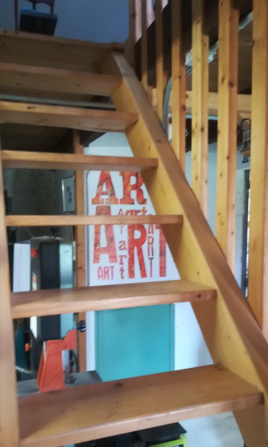 Alors, derniers encadrements, premiers accrochages, peut-être pas définitifs, et surtout rangement, déplacement de choses, de machines, et d’outils.