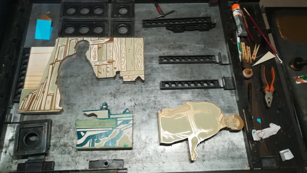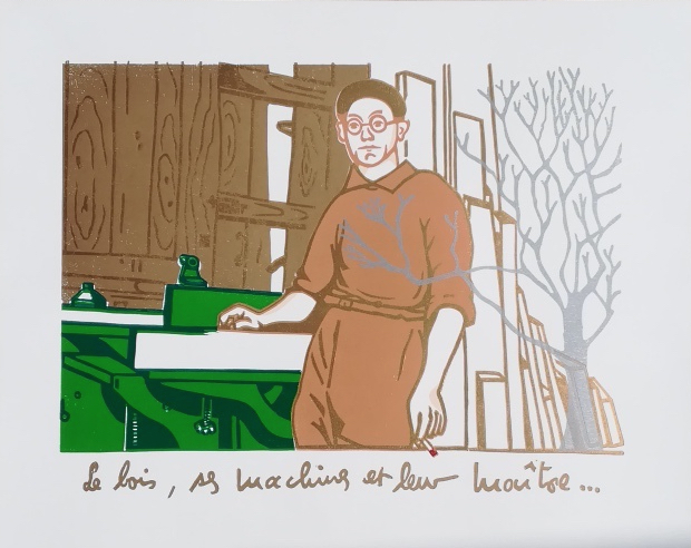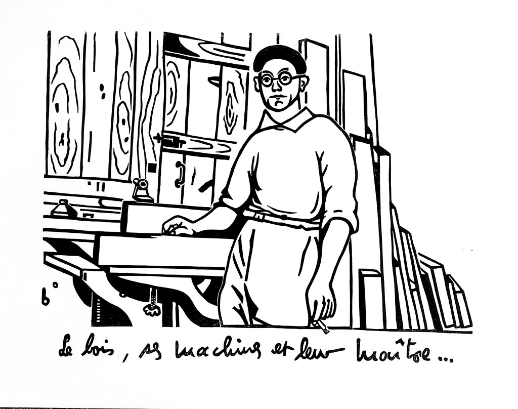 Après une longue linogravure en plusieurs couleurs, « le bois ses machines et leur maître », je repars sur un projet plus modeste, mais, mais, mais, tout aussi porteur de surprises !