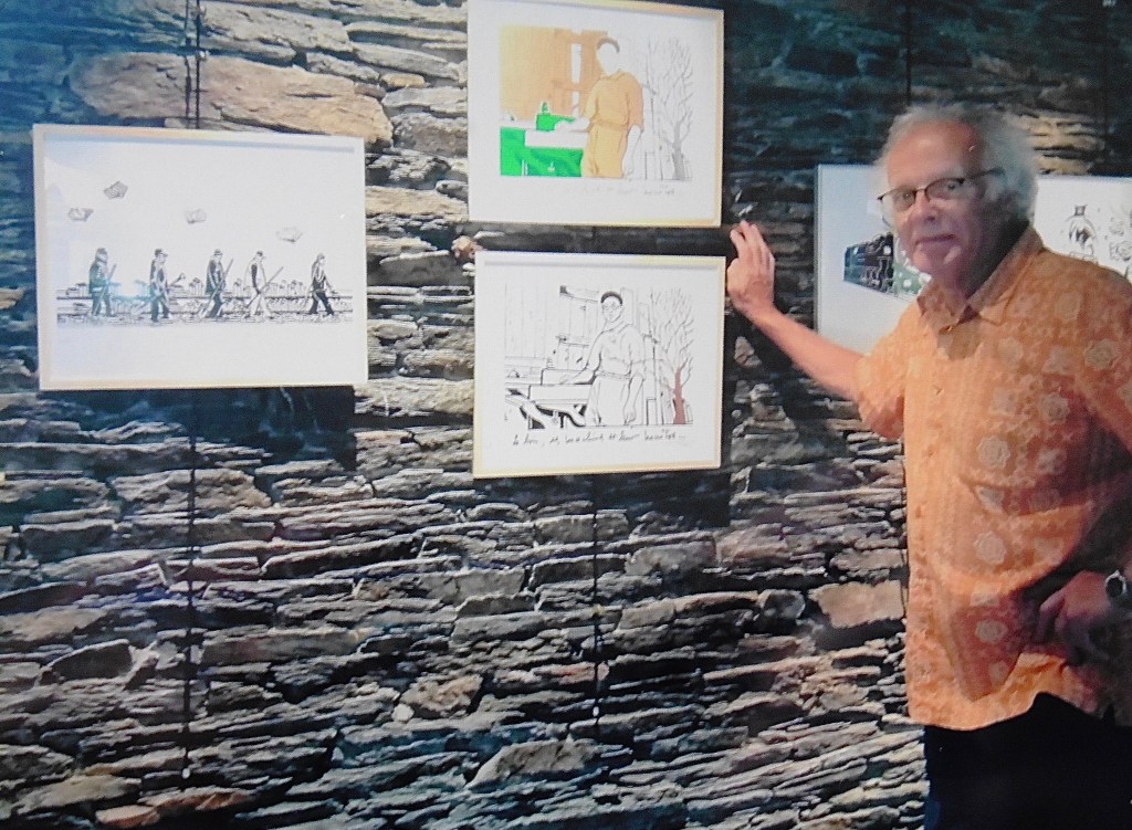 On a installé ce matin dans la grande halle, toute de pierre, deux séries de gravures : d’une part le travail des gens, d’autre part le repos, les loisirs.