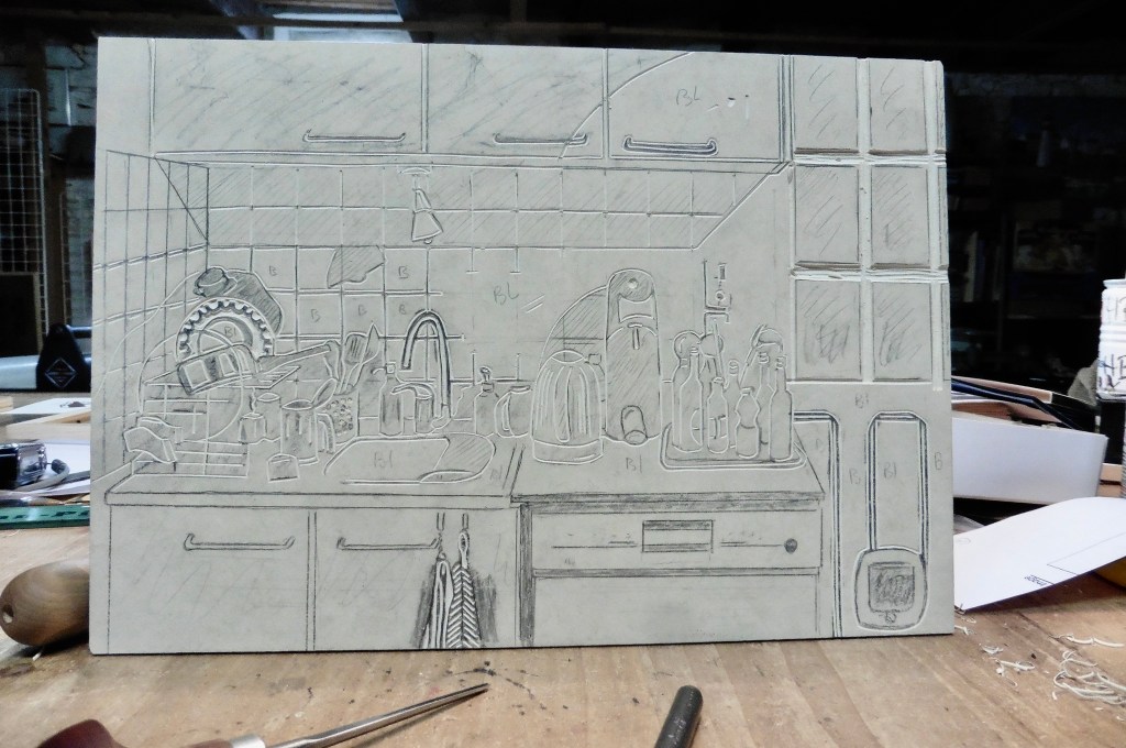 Et la gravure prend forme : j’opte pour la technique « Picasso »,