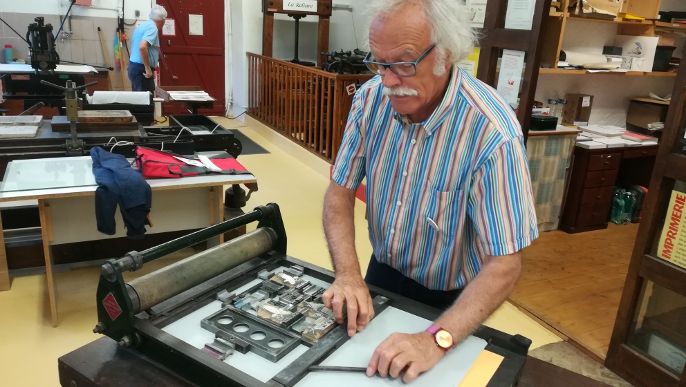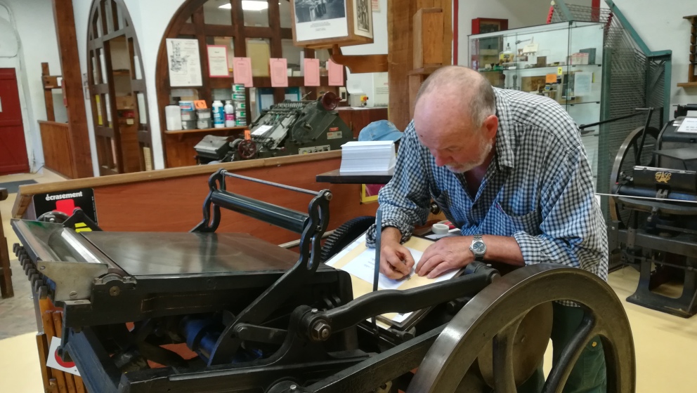 Aujourd’hui, j’ai commencé à composer les textes en Vendôme corps 20, ma police de caractères préférée, et à les imprimer dans la foulée, ma casse ne comportant pas assez de caractères pour tout composer d’un coup.