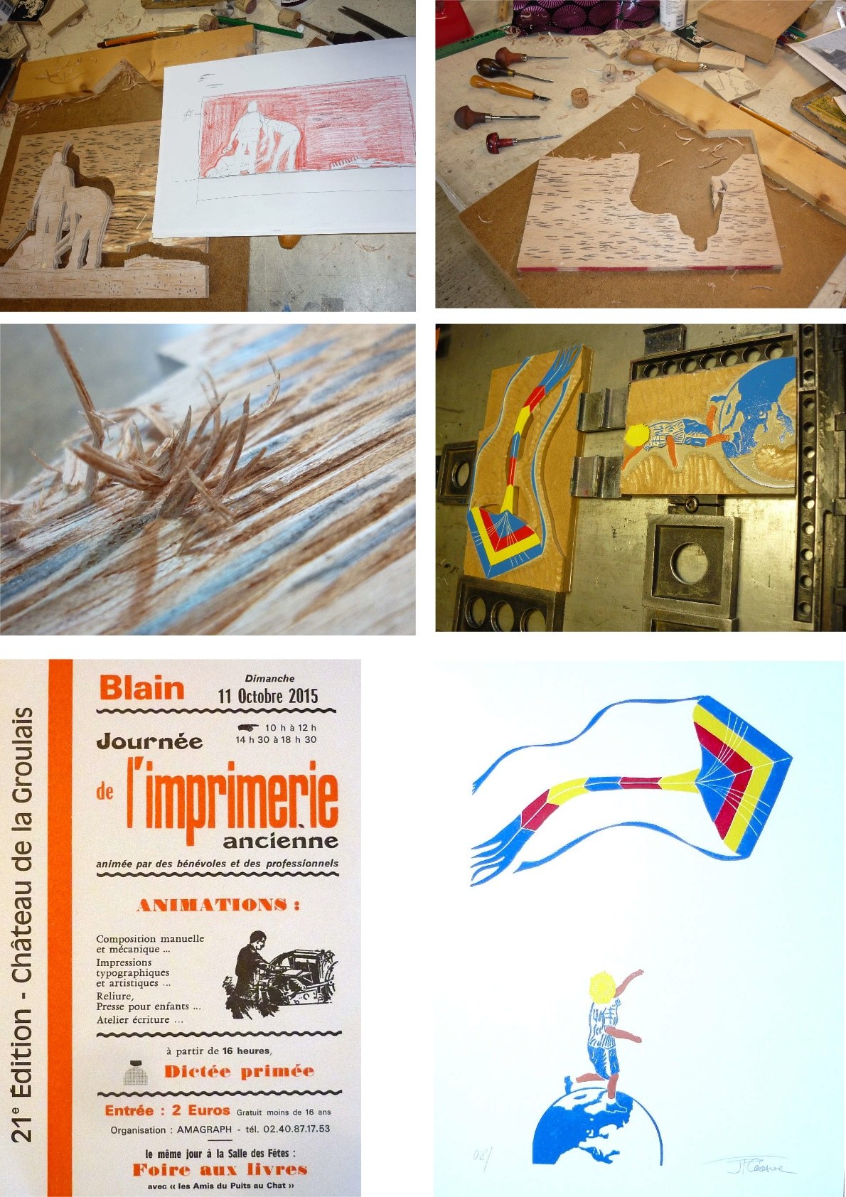 Nous, c’est Marthe Rougieux, enluministe, Hélène Fortin-Rincé, vitrailliste, Anne Leroux, céramiste, Marina Le Dorner Relieure, et moi, en l’occurence ancien faiseur de jeux et jouets en bois, redevenu l’espace de cette création tourneur sur bois !