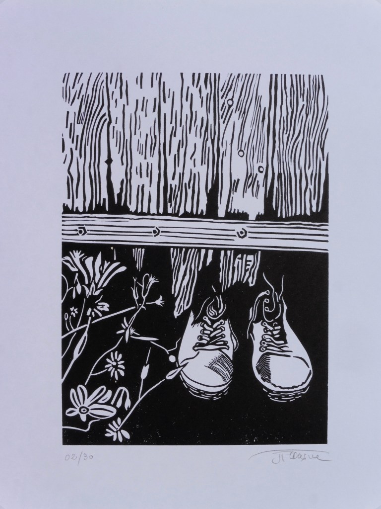 Le thème du prochain « atelier » à l’atelier est : les chaussures, souliers, godasses, grolles, tatanes, pompes … alors j’ai réalisé ma propre gravure :
