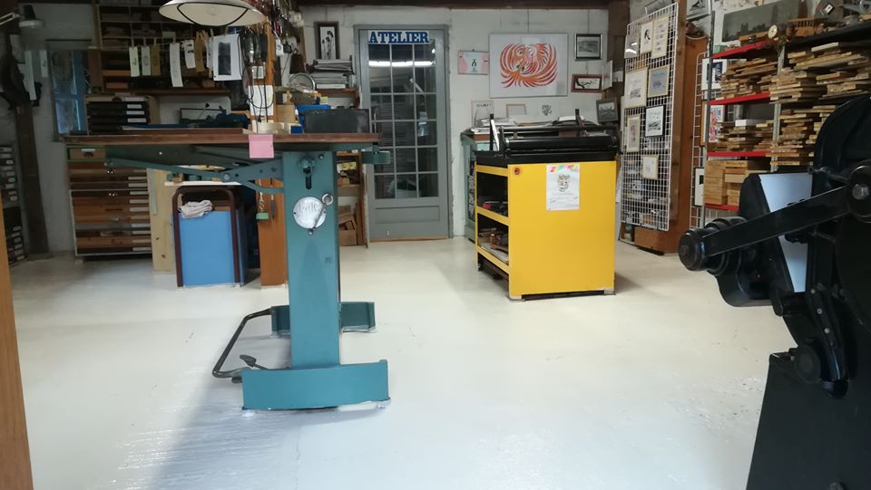 En effet, le musée atelier de l’imprimerie de Blain dont je fais partie accueillait trois invitées : une typographe émergente, une calligraphe confirmée et une graveur-e sur cuir tout aussi confirmée !